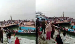 দৌলতদিয়ায় ফেরিতে ওঠার সময় বাস নদীতে পড়ে; বহু হতাহতের আশঙ্কা