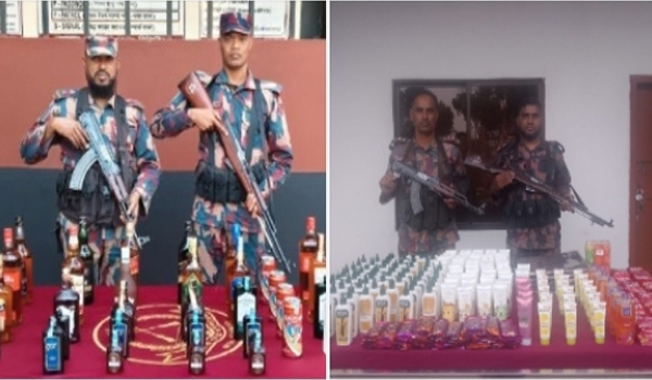 যশোরের বেনাপোল সীমান্তে শনিবার ভোরে বিজিবি এক বিশাল অভিযান চালিয়ে মালিকবিহীন মাদকদ্রব্য ও অবৈধ চোরাচালানী পণ্য আটক করেছেন। এই অভিযানে মোট ৩৩ বোতল বিদেশি মদ, ৬৬ পিস শাড়ী, ৭টি কম্বল, ১ হাজার ৬৫ পিস চকলেট এবং ৮১২ পিস কসমেটিক্স সামগ্রী উদ্ধার করা হয়েছে। এসব মালামালের সিজার মূল্য আনুমানিক প্রায় ১০ লাখ টাকা বলে জানা গেছে।