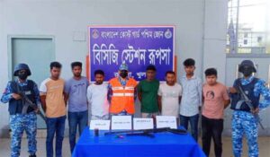 খুলনার দিঘলিয়ায় কোস্টগার্ডের এক বিশেষ অভিযানে ককটেল-বোমা, দেশীয় ও একনলা বন্দুকসহ খবির মোল্লা নামের সন্ত্রাসী গ্রুপের সাত সদস্যকে আটক করা হয়েছে। রোববার (১৫ মার্চ) ভোর ৫টায় গোপন সংবাদের ভিত্তিতে কোস্টগার্ড স্টেশন রূপসা যৌথভাবে গাজীরহাট এলাকায় তল্লাশি চালিয়ে অভিযানটি পরিচালনা করে।